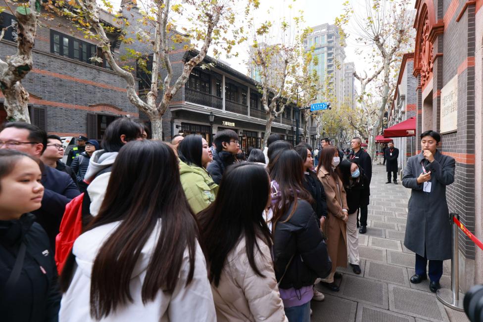 2025年12月30日上午,国际教育学院辅导员陶伟、国际教育学院“星辰计划导师团”青年导师吴凡、马克思主义学院青年教师蒋吕一、闫淳纯带领43名来自世界各地的留学生走进中共一大纪念馆,开启了一场沉浸式的“周周看上海”活动。通过实地探访、聆听故事,留学生们在历史与现实的交融中,对中国的发展历程有了更为深刻的认知。