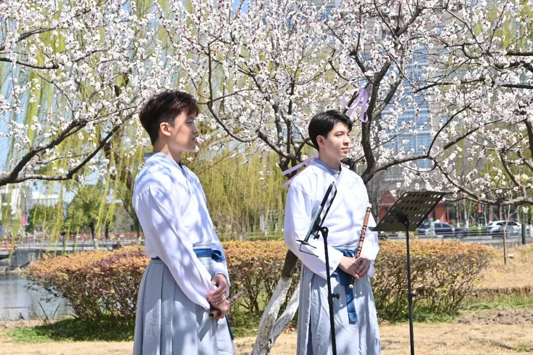 Though the spring chill still lingers in Shanghai, the apricot trees are already bursting with brilliant blossoms. On March 14th, the "Blossom Bridge" International Apricot Blossom Life and Art Experience Journey, hosted by the International Education College of Shanghai University of Traditional Chinese Medicine, kicked off at the campus Apricot Blossom Bay. The trees, laden with pink and white blossoms, resembled clouds and snow. As a cheerful flute melody filled the air, the atmosphere instantly reached its peak. Over 200 international students gathered in Apricot Blossom Bay, strolling and playing, unlocking the joy of an East-meets-West fusion in the springtime.