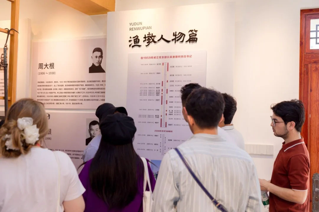 La primera parada de la actividad fue el antiguo pueblo de Yudun, en la localidad de Situan del distrito Fengxian, donde los estudiantes visitaron el museo de historia del pueblo para conocer la fusión entre la cultura pesquera centenaria y la medicina tradicional china. Las maquetas de barcos y capas tradicionales de paja captaron su atención, mientras los profesores los guiaban en la recitación de versos clásicos como “En una barca solitaria, un viejo con sombrero de bambú pesca solo en el río nevado.”