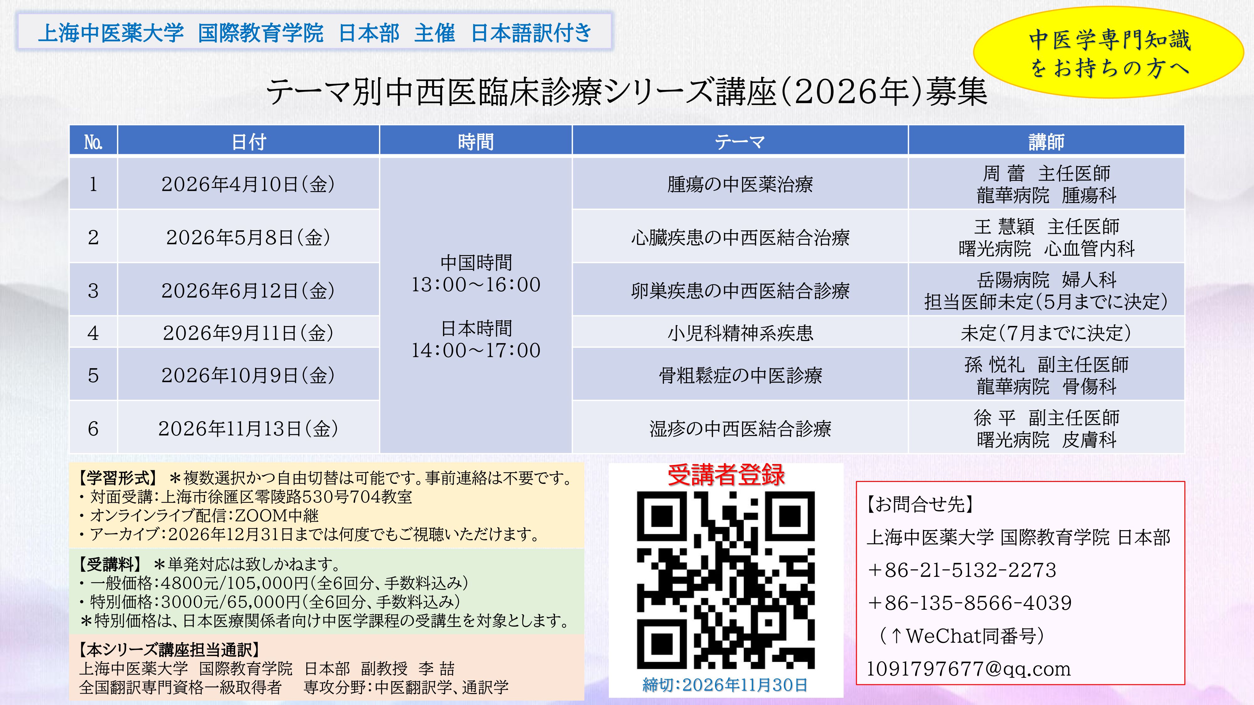 2026春開講日本医薬関係者向け中医学課程募集要項